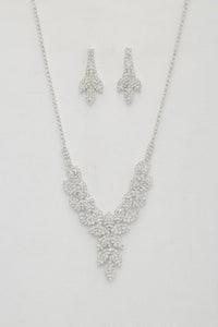 Introducing the LEAF PATTERN CRYSTAL NECKLACE in a sleek Rhodium finish. Elevate your neckline with this exquisite necklace that features a delicate leaf pattern adorned with sparkling crystals, adding a touch of timeless elegance to your look.