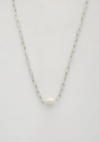 "I adore the sophistication of this Pearl Bead Oval Link Necklace! The rhodium finish is sleek, and the lobster clasp ensures a secure fit. It's the perfect accessory for adding a touch of elegance to any outfit." - A. S.