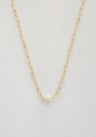"The Pearl Bead Oval Link Necklace is a classic beauty! The pearl beads are lustrous, and the oval links add a modern touch. I wear it for special occasions and with casual outfits—it's so versatile and elegant." - E. C.
