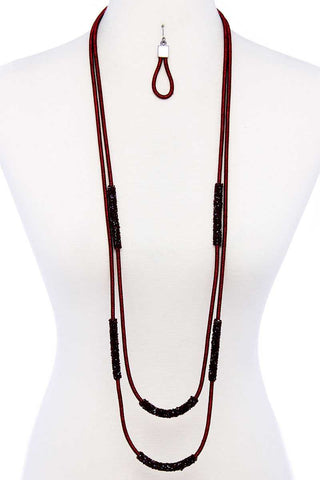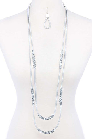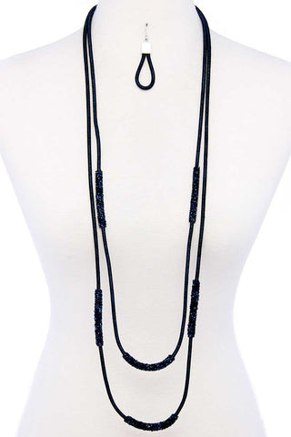 Double Layer Chic Long Necklace And Earring Set - Blue