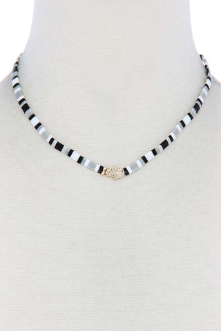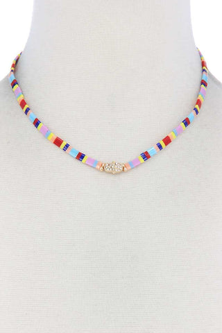 Hamsa Hand Charm Color Block Necklace - Multi 3
