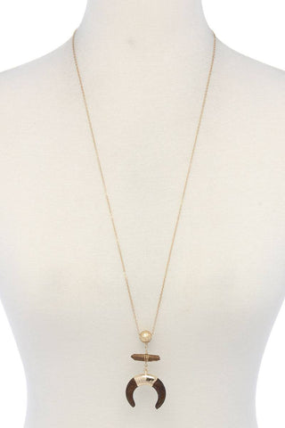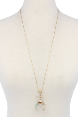 Double horn natural stone pendant necklace Sale