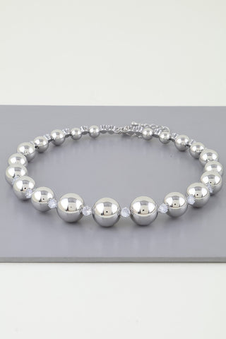 Rhinestone Beaded Choker Necklace - Silver