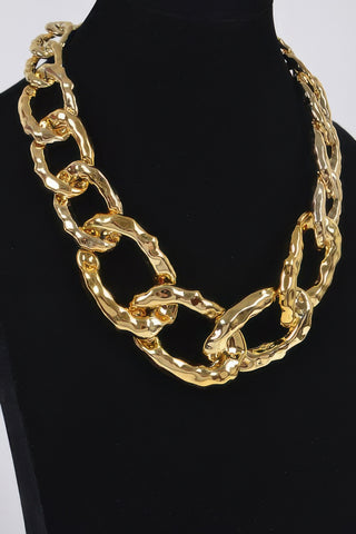 Product Description: Make a sophisticated statement with the Hammered Link Chain Necklace. Crafted with oversized hammered links in a lustrous gold-tone finish, this necklace exudes strength and elegance. Whether layered over a blouse or paired with an evening dress, it brings elevated style and bold texture to any outfit.