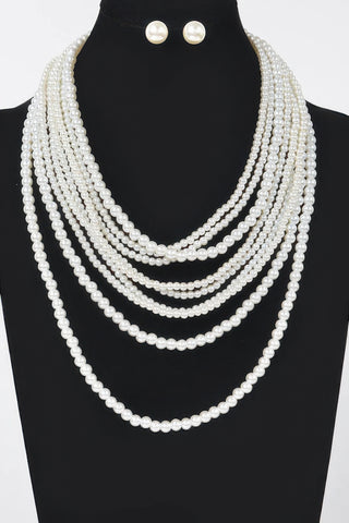 Multi Pearl Layered Necklace W/earring - Ivory
