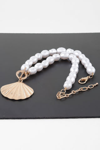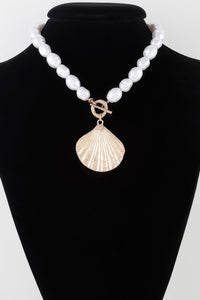 Product Description: Inspired by the serene beauty of the sea, the Pearl Seashell Toggle Necklace blends coastal charm with timeless elegance. This 14-inch necklace features a strand of lustrous white pearls complemented by a bold gold shell charm, creating a sophisticated balance of texture and shine. The toggle clasp adds a modern, functional touch while enhancing the overall design. Perfect for both seaside escapes and city styling, this piece adds a breezy, refined accent to any look. A beautiful gift or personal keepsake, it captures the spirit of the ocean with elegance and grace.