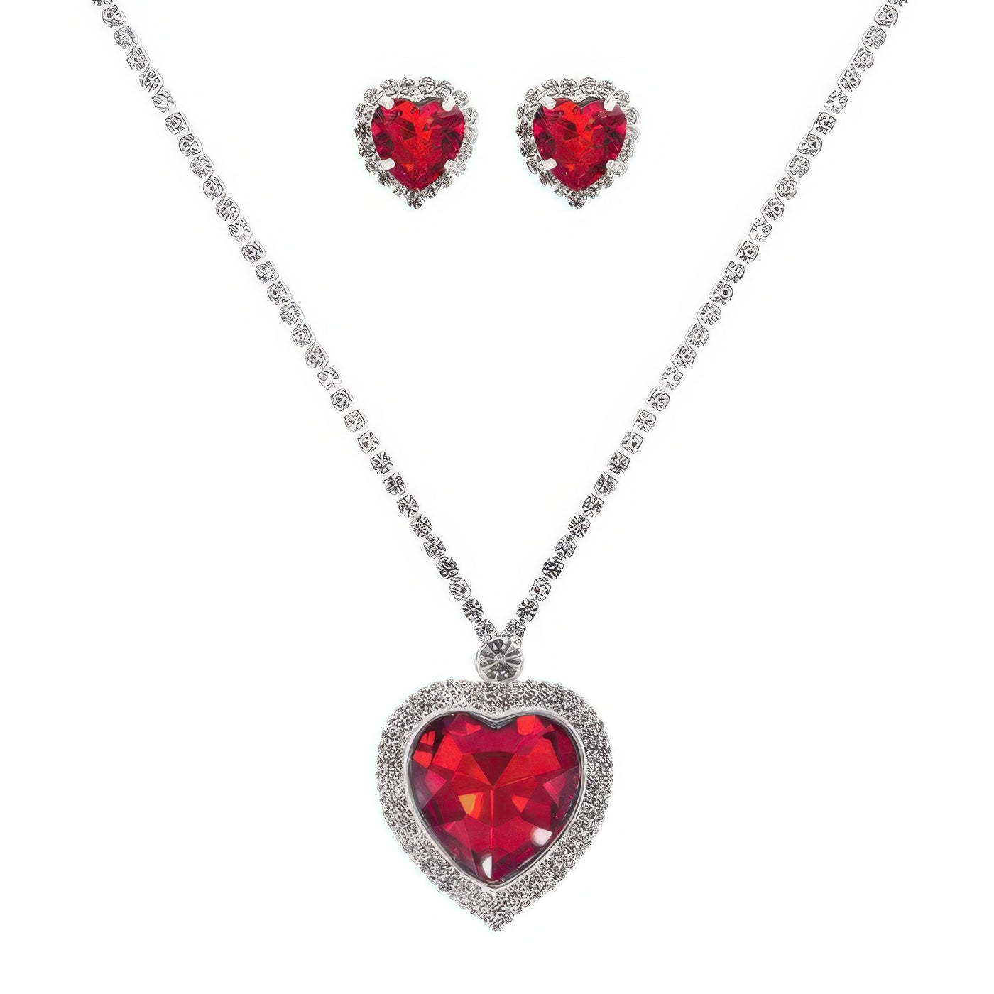 Product Description: Celebrate love in style with this Valentine's Day Heart Gemstone Necklace and Earring Set. Featuring a heart-shaped crystal pendant and matching stud earrings, this charming duo adds a touch of sparkle to any outfit. The delicate design is both feminine and festive, making it a thoughtful gift for a partner, friend, or yourself. Perfect for date nights, holiday dinners, or seasonal celebrations, this set brings timeless romance to your jewelry collection.