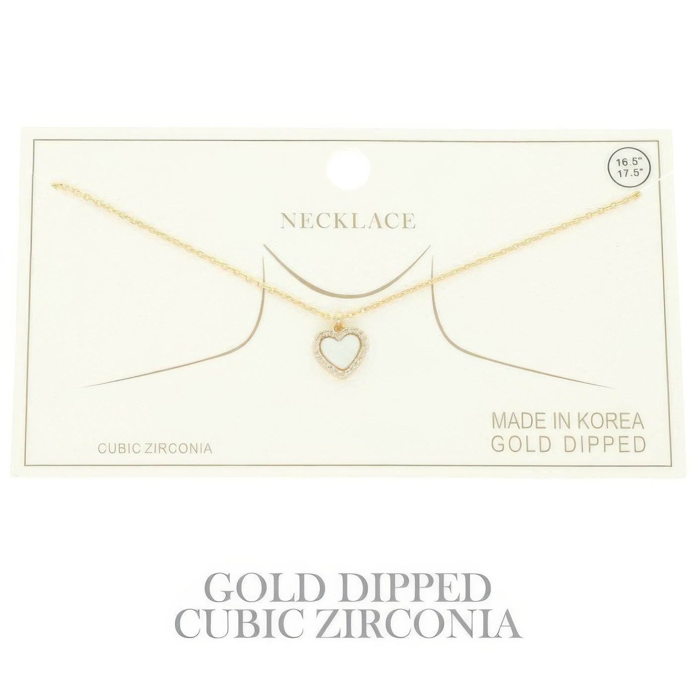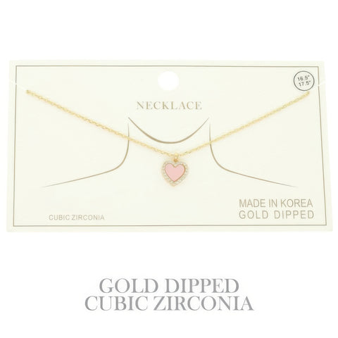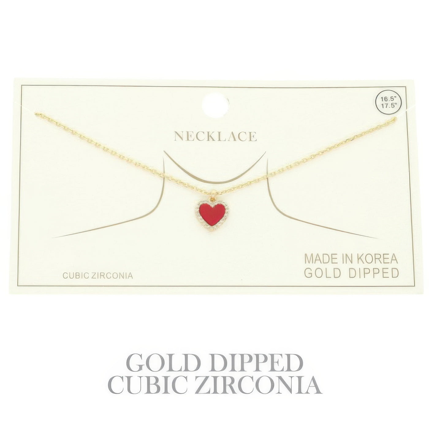 Product Description: This enamel inlay heart pendant necklace is a charming way to express love and style. Crafted with sparkling cubic zirconia in a pave setting, the dainty heart pendant rests on a fine gold-plated chain. Offered in yellow or white gold finishes, it’s lightweight and designed for comfort and elegance. Its clean silhouette makes it a perfect everyday piece or a meaningful gift. With an adjustable fit and subtle shimmer, it pairs beautifully with both casual and elevated looks.