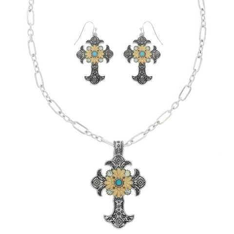 Western Turquoise Cross Necklace Set - Black Turquoise