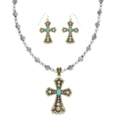 Western Turquoise Cross Necklace Set - Black Turquoise