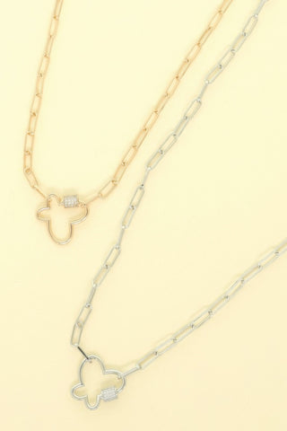 Product Description: Delicate and romantic, this butterfly cutout pendant necklace brings a touch of modern charm to any look. Featuring a pave-set cubic zirconia butterfly design with a lock-inspired accent, it symbolizes both beauty and protection. Available in white or yellow gold plating, it’s designed with a dainty chain and adjustable length for versatile layering. Lightweight and sparkly, this piece makes an ideal gift for date nights, anniversaries, or Valentine's Day.