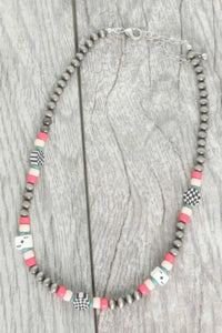 Product Description: The Western Theme Charm Beaded Necklace delivers playful style with a bold personality. This choker-length necklace features multi-colored turquoise beads, a checkered bead accent, and whimsical playing card charms. Its light, snug fit makes it comfortable for all-day wear, while the adjustable chain allows for perfect sizing. Perfect for themed events, festivals, or adding a pop of color to your everyday look, this piece blends retro casino flair with Western charm.