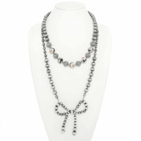 Product Description: Add a touch of femininity to your Western look with the Western Bow Pendant Beaded Necklace. Featuring multiple strands of beads and a charming bow pendant, this necklace combines strength and style in one statement piece. Its adjustable length ensures a perfect fit, while the lightweight design keeps it comfortable for all-day wear. Ideal for festivals, rodeos, or brunch with friends, this piece is a versatile accessory for any Western-inspired wardrobe.