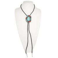 Product Description: The Western Turquoise Concho Bolo Necklace offers a bold, bohemian-inspired look with a touch of rustic elegance. Featuring an oversized oval turquoise concho in oxidized silver-tone metal, this piece makes a striking statement. Its extra-long 46" cord allows for adjustable wear, giving you versatility in styling. Ideal for rodeos, music festivals, or adding a Western accent to everyday outfits, this bolo necklace blends artisan style with timeless appeal.
