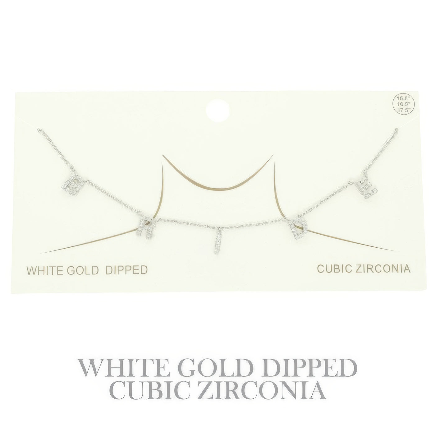 Product Description: Designed with bridal joy in mind, this “BRIDE” pendant necklace is a sparkling celebration of love. Crafted with pave-set cubic zirconia in a modern letter design, it gleams in white or yellow gold plating. Lightweight and delicate, it’s perfect for layering with other wedding-day jewelry or wearing solo as a statement. A thoughtful gift for the bride-to-be or a stunning bridal shower accessory.