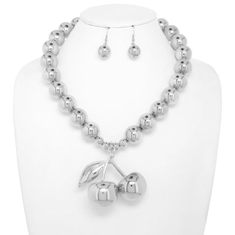 Product Description: Sweeten up your jewelry box with this Polished Cherry Pendant Necklace Set. Featuring a glossy cherry charm with matching earrings, this playful duo is full of shine and personality. Available in both gold-tone and silver-tone options, it’s the perfect accessory for adding a fruity statement to any outfit. Lightweight and eye-catching, this set is ideal for teens, friends, and anyone who loves a bit of bold fun.