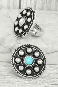 Western Bubble Jeweled Stretch Ring - Silver Clear