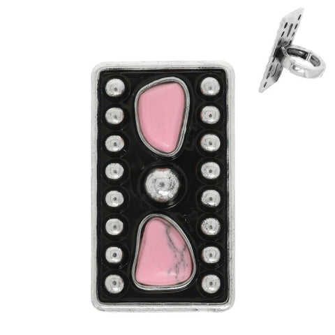 Product Description: Add bold western flair to your accessories with the Western Jeweled Rectangle Stretch Ring. Designed with a turquoise center and bubble detailing in oxidized silver-tone metal, this ring offers rustic charm with flexible styling. The stretch band ensures a comfortable fit across sizes, making it a standout for country concerts, rodeos, or casual everyday looks.