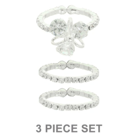 Product Description: Add sparkle and versatility to your accessory rotation with this 3-piece adjustable ring set. Each piece features crystal, pearl, or rhinestone accents in a coordinated silver-tone finish, offering a polished and feminine look. Stack them together or wear solo for subtle shimmer. With adjustable bands, these rings provide a custom fit that’s both stylish and comfortable.