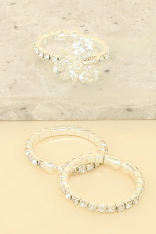 Set of 3 rings with rhinestone, pearl, and crystal details