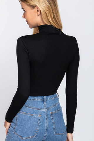 Long Slv Turtle Neck Rib Crop Knit Top