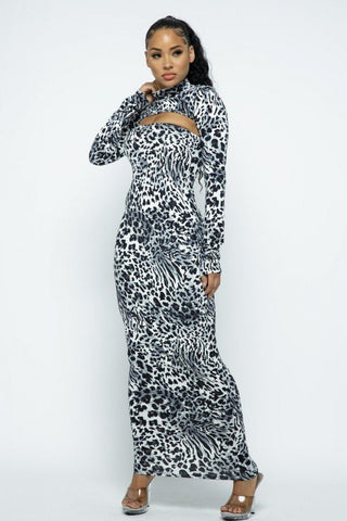 Elevate your style with our Mock Neck Long Sleeve Thumb-In Top with Tube Top Long Dress Set in versatile Grey. Add it to your cart now for a perfect blend of fashion and comfort!