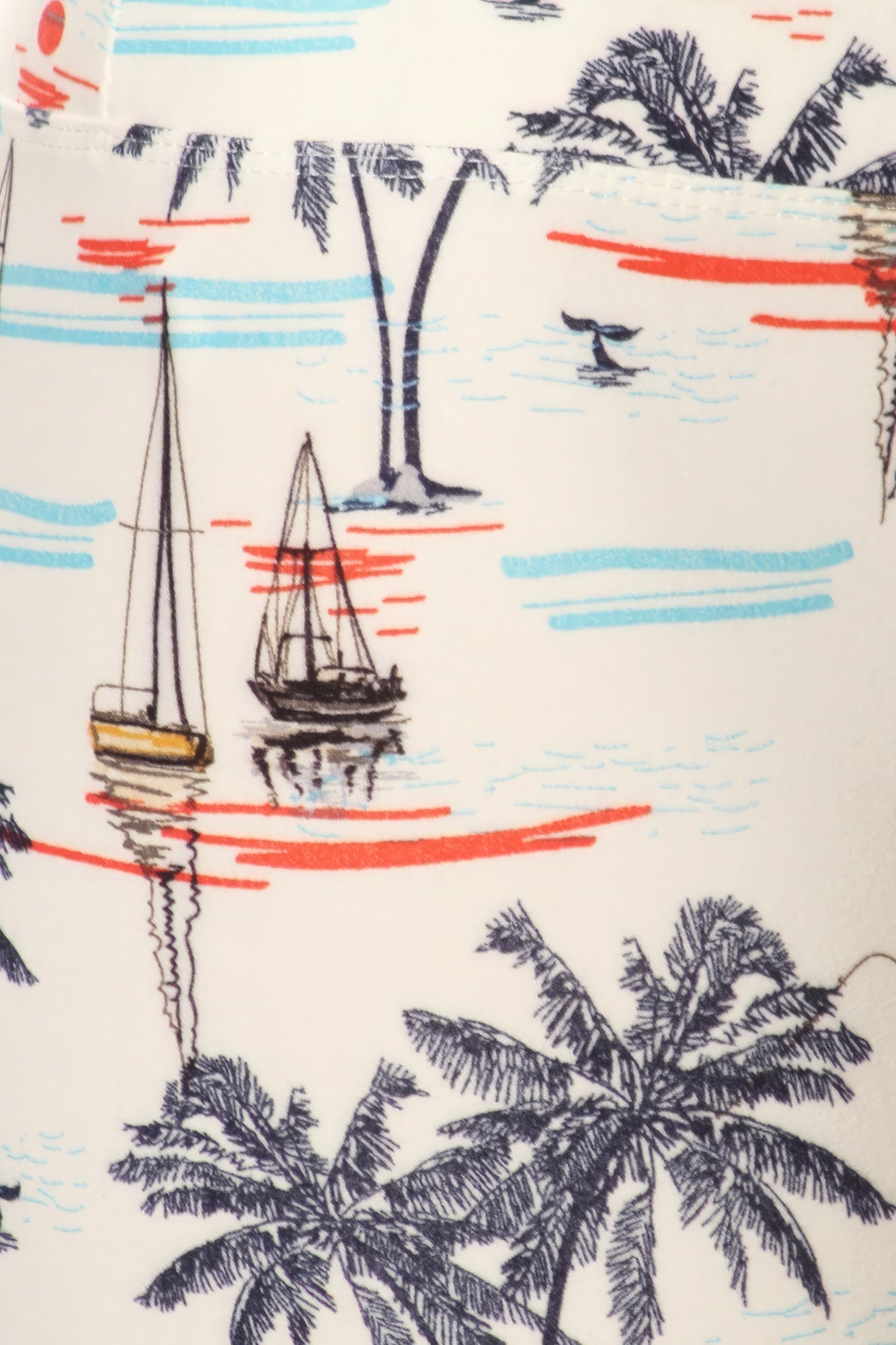 5-inch Long Yoga Style Banded Lined Sailor Printed Knit Legging With High Waist - Multi