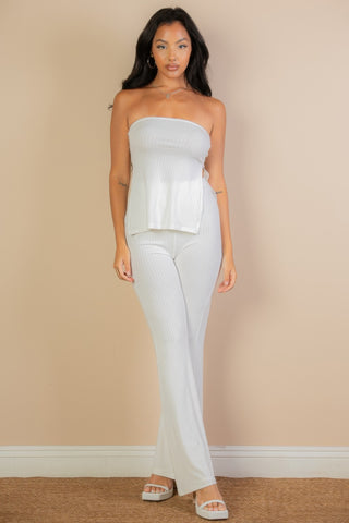 Ribbed Side Slit Bandeau Top & Flare Pants Set Sale