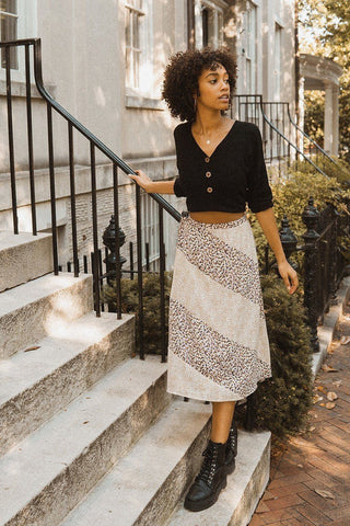 Why Choose Floral-Print Woven Midi Skirt in Taupe?