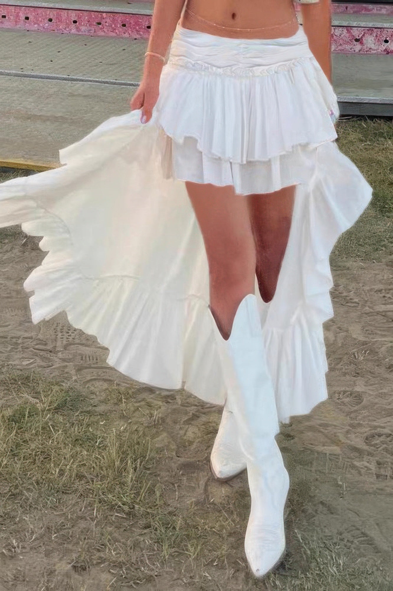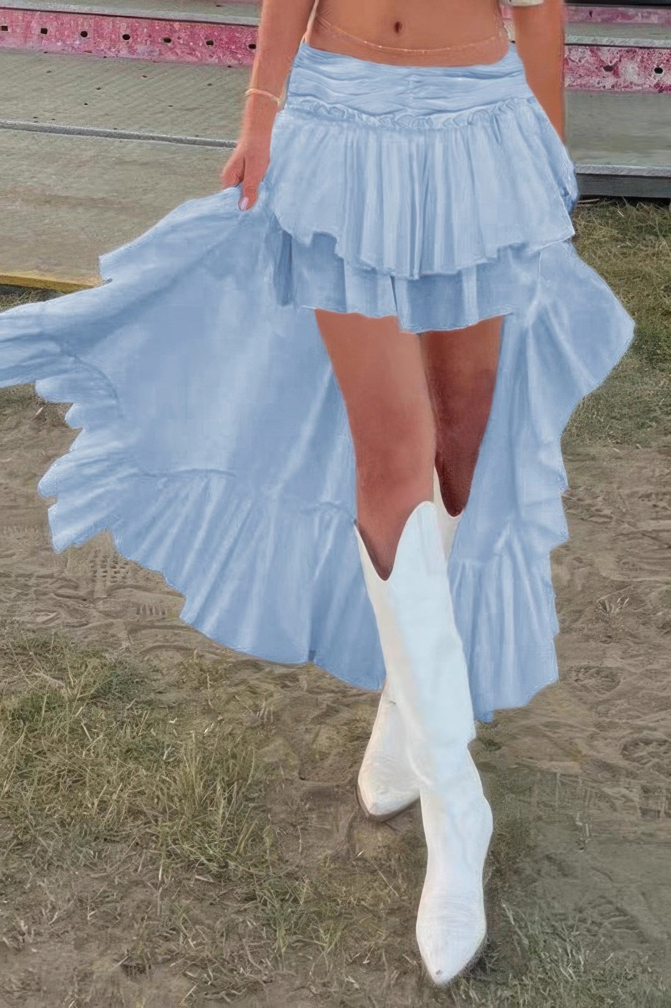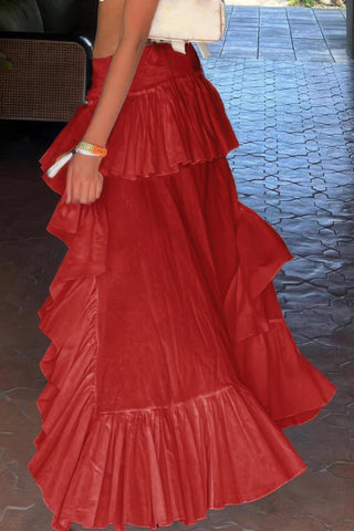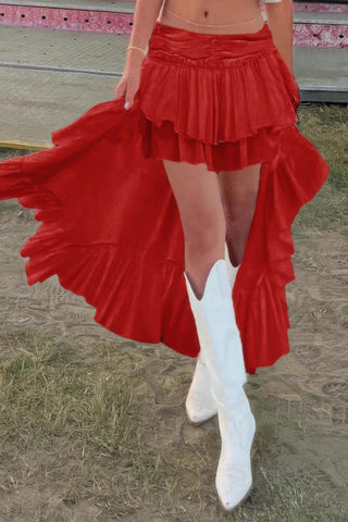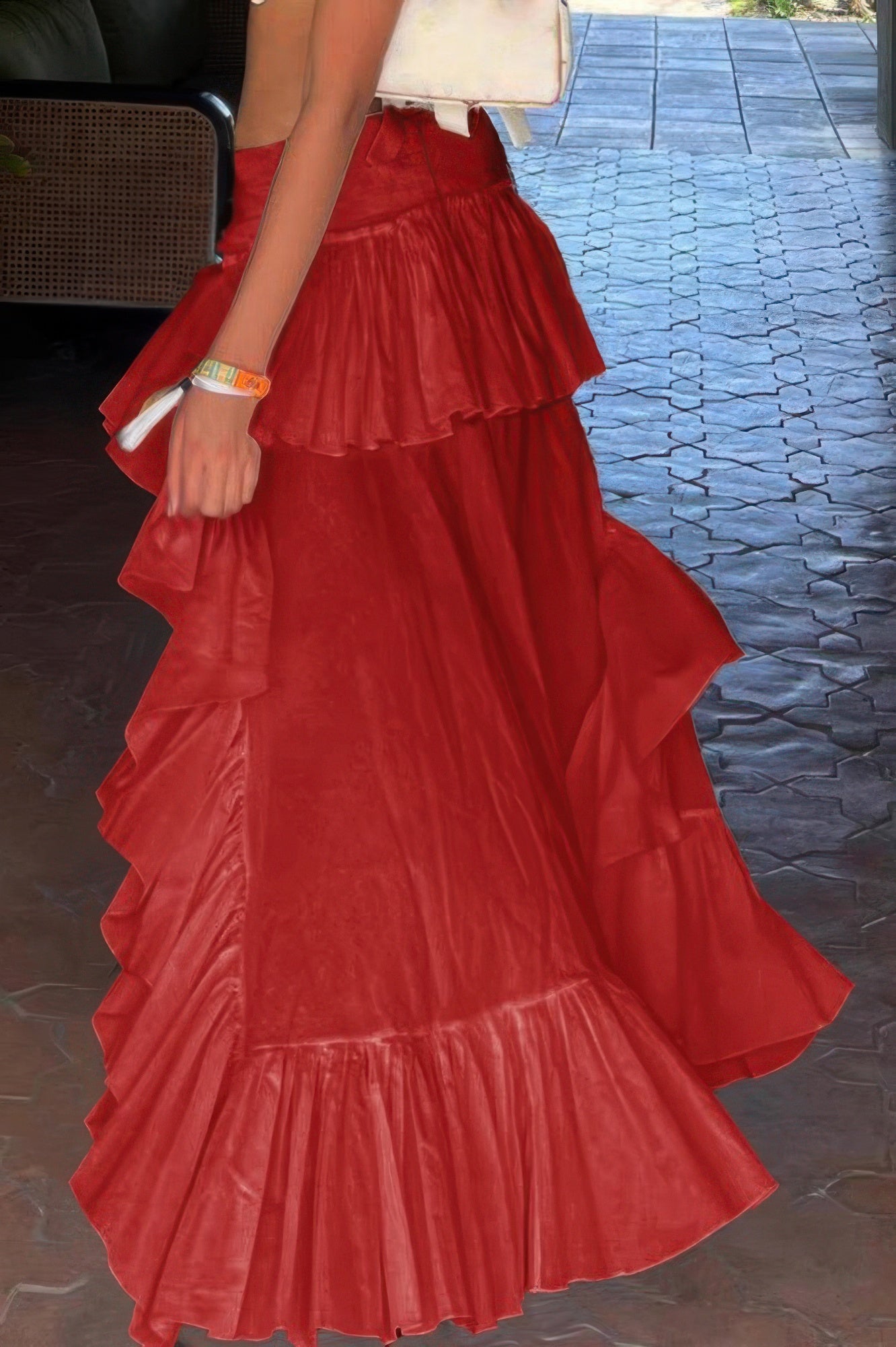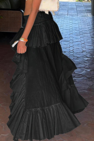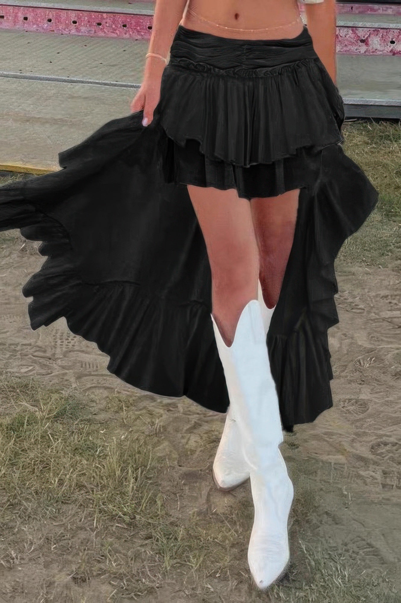 Add a touch of edgy elegance to your wardrobe with this Solid Low Ruffle Hem Egirl Goth Tiered Midi Skirt. Crafted from lightweight polyester, this skirt features tiered layers with a playful ruffle hem, offering both comfort and standout style. Perfect for expressing your individuality, this skirt pairs easily with fitted tops, boots, or sneakers for versatile looks ideal for casual days or nights out.