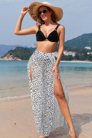 Product Description: Chic and contemporary, the Printed Two Pieces Split Sheer Mesh Pants Swimsuit combines beachwear and cover-up in one. This bold set includes a two-piece swimsuit and flowy sheer mesh pants with a split-leg design. Perfect for vacations and resort lounging, it’s made for making a statement in the sun.