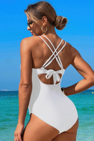Solid Cross Back Knot Color Block Lace Swimsuit Sale