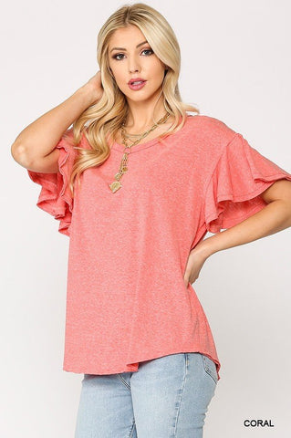- "Absolutely love this top! The frill sleeves add a playful touch, and the Coral color is so refreshing. Perfect for any day!" - A. M.