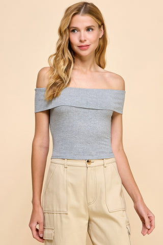Add the Off Shoulder Ribbed Top in Heather Grey to your collection today and enjoy effortless style, comfort, and versatility!