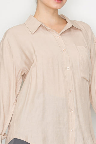Add the Button Down Collared Linen Shirt in Beige to your wardrobe today and enjoy effortless style, comfort, and versatility!