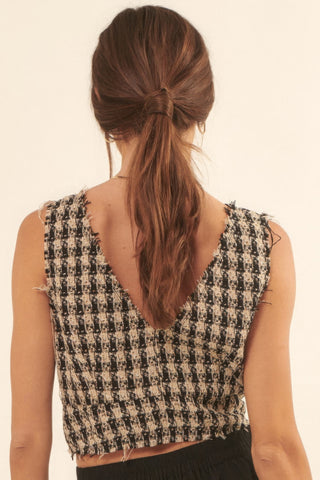 Whether it's a casual day out or a polished ensemble, the V Neckline Plaid Woven Vest in "Sand Black" is your go-to choice for versatile and refined style.