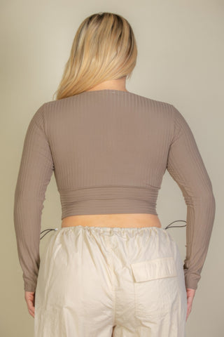 Plus Size Ribbed Wrap Front Long Sleeve Top