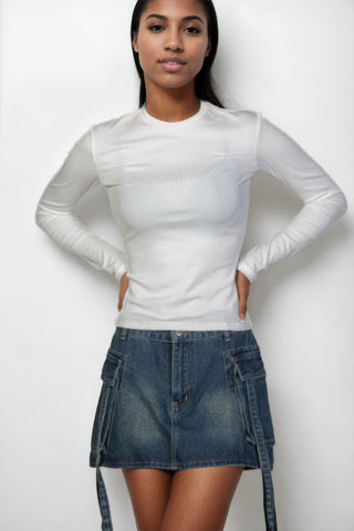 The Ribbed Round Neck Long Sleeve Top is a must-have addition to your wardrobe, designed to offer both comfort and style in every wear. Made from a soft, medium-weight stretch rib knit, this top is versatile enough to wear on its own or as a layering piece.