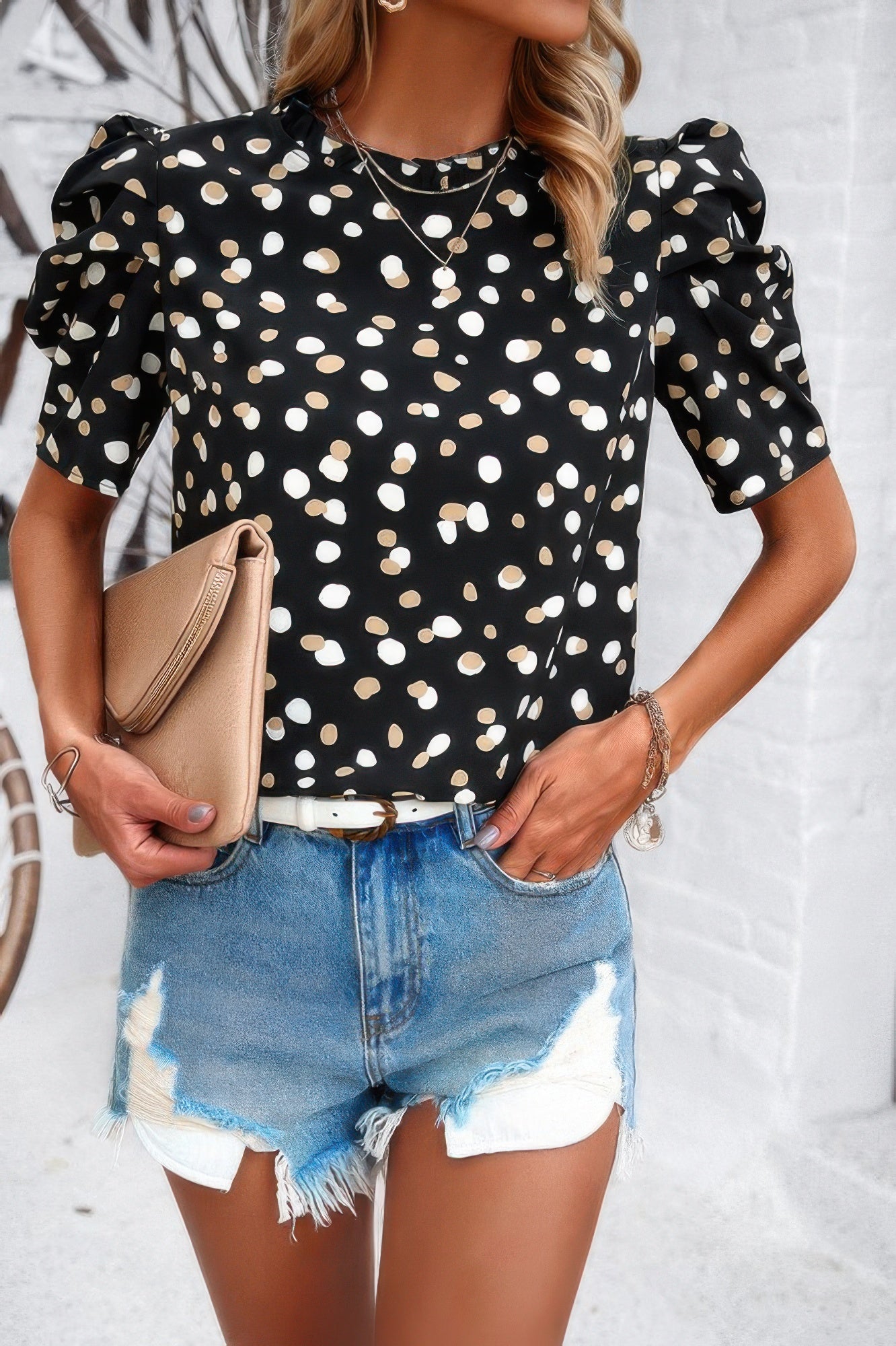 Product Description: This puff sleeves allover print knot loose fit top adds a playful and feminine touch to your casual style. Crafted from 100% polyester, it’s lightweight and comfortable, perfect for everyday wear. The puff sleeves create a romantic, airy silhouette, while the knot detail at the hem brings a modern twist. The allover print adds a pop of color and personality, making it a standout choice for any casual outing, vacation adventure, or outdoor gathering. Pair it with your favorite jeans or shorts for an effortlessly chic look.