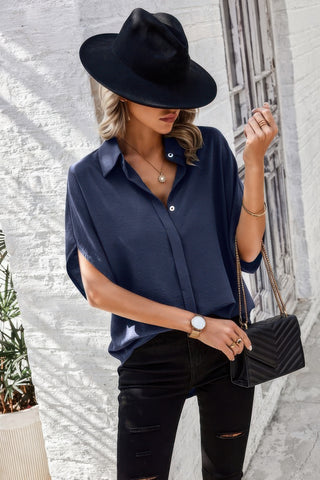 Solid Front Open Button Loose Fit Blouse Sale