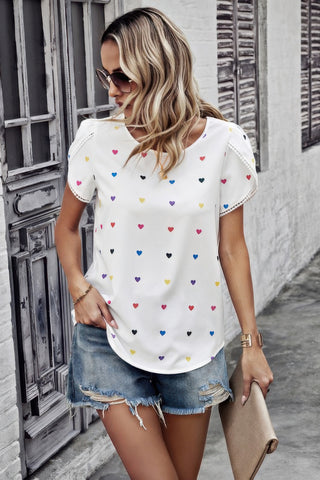 Product Description: Stay effortlessly cool with this Heart Print Round Neck Loose Fit Shirt, designed for easy comfort and playful charm. Made from soft, comfy fabric, this shirt features a sweet heart print and a relaxed fit, perfect for adding a touch of fun to your casual wardrobe. Whether for daily wear or weekend outings, this top keeps you stylish and comfortable.