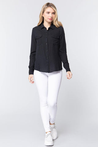 • Dot Print: The playful dot print adds a timeless and chic element to the shirt, making it suitable for various occasions.