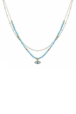 2 Layered Metal Seed Bead Evil Eye Pendant Necklace Sale