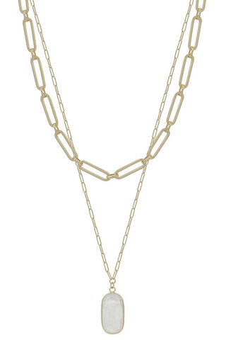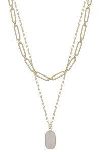 2 Layered Metal Chain Stone Pendant Necklace